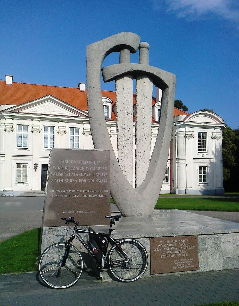 Przed pałacem stoi Pomnik Czynu Grunwaldzkiego "Dwa Miecze", który został odsłonięty w 1960 roku, w 550 rocznicę wymarszu wojsk króla Władysława Jagiełły z Wolborza na bitwę pod Grunwaldem. |