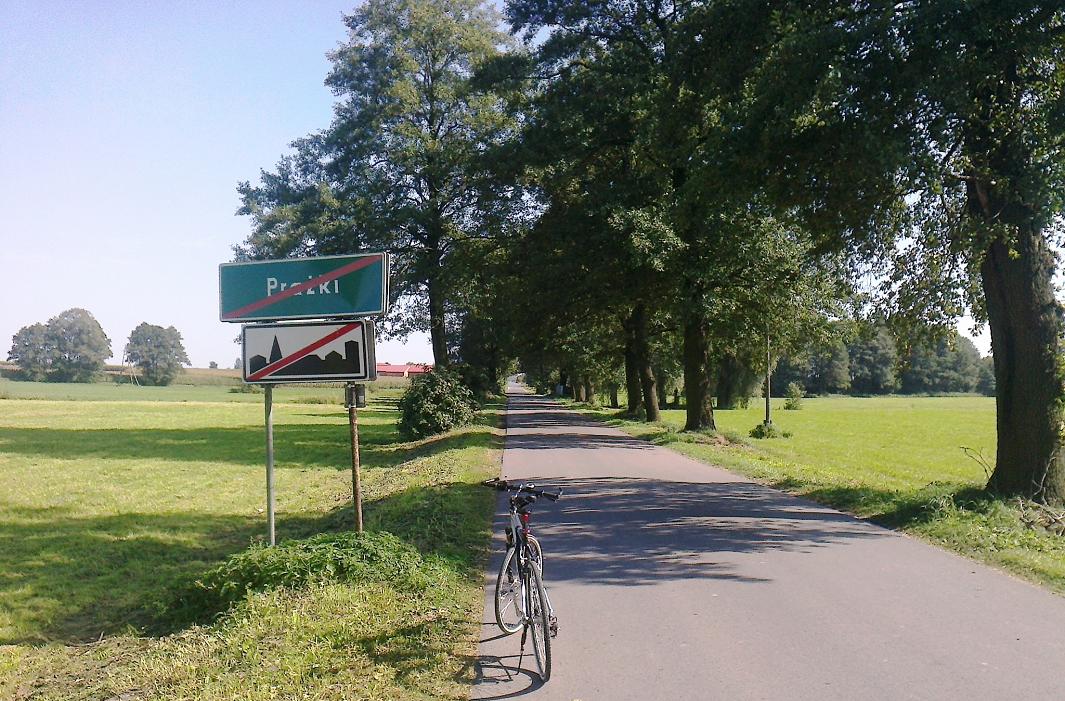 Wjeżdżam do wsi Prażki. Pedałuję żwawo do kapliczki, która znajduje się za budynkiem szkoły. Skręcamy w lewo na Będków. |