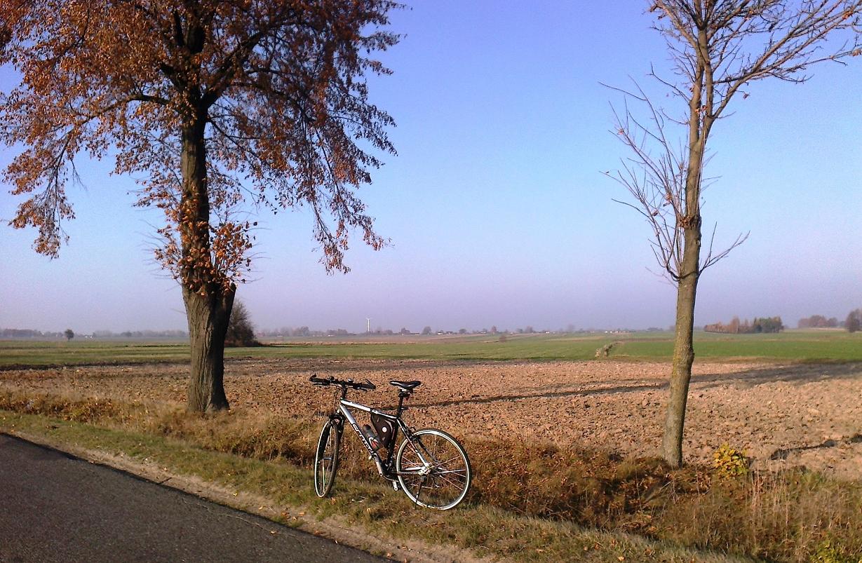 | Równym, miarowym tempem jadę przez tę typową polską wieś. Dojeżdżam do skrzyżowania z drogą krajową nr 71, która wiedzie ze Rzgowa do Pabianic. |