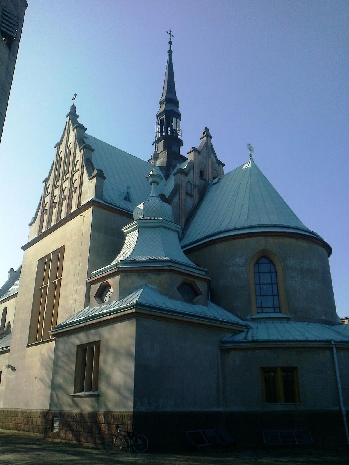 | Zatrzymuję się na dłużej na ul. Głównej 143, przed parafią Wniebowzięcia Najświętszej Marii Panny. Kościół wybudowany został w latach 1879-1891, w stylu neoromańskim z motywami neorenesansowymi. |