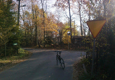 | To jeden z ostatnich etapów niedzielnego wypadu za miasto. Naciskam jeszcze mocniej na pedały, bo droga tu równa i jest lekko z górki. Pędzę do Woli Rakowej trasą poznaną podczas WYCIECZKI Nr 32 (z tym, że w odwrotnym kierunku). |