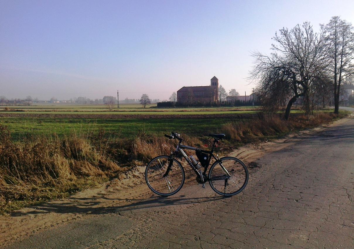 Jadę w prawo obok kościoła św. Szczepana, trasą na Piątek i Mąkolice. |