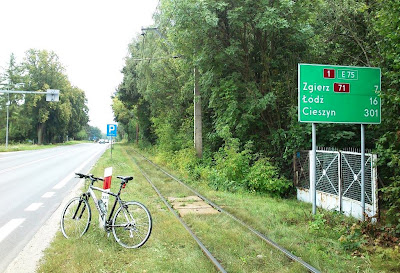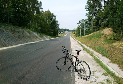 Wyjeżdżam z ronda na północ i od tej pory pracuję w pocie czoła nad poprawieniem średniej prędkości wycieczki. Do Łodzi jeszcze 16 km, łapię więc łyk wody i do roboty ! |