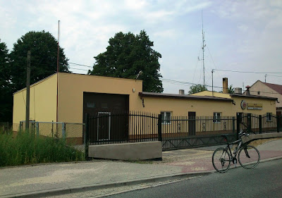 Wracam do szosy i kieruję się na zachód. Za kościołem i starą plebanią, którą zbudowano w 1902 roku, znajduje się Ochotnicza Straż Pożarna w Modlnej. |