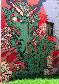 | Dopełnieniem nowego muralu na Kozinach, są ubrani w białe stroje z czerwonymi krzyżami, rycerze z twarzami szkieletów, umiejscowieni na zaniedbanych kolumnach ogrodzenia. |