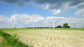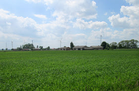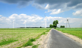 | Teodorów to wyjątkowe miejsce na rowerowych szlakach ! Wieś położona jest na sporym wyniesieniu terenu i nic dziwnego, że zainstalowane tu zostały potężne wiatraki. |