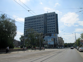 | Za Placem Reymonta, mijam biurowiec banku Pekao S.A. (ul. Piotrkowska 288) i skręcam w ul. Rzgowską. |
