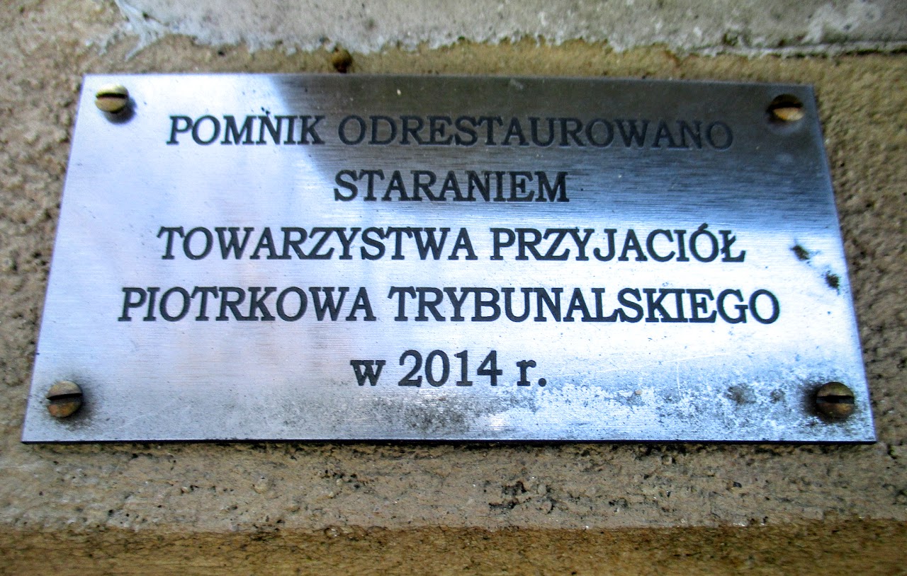 "Pomnik odrestaurowano staraniem Towarzystwa Przyjaciół Piotrkowa Trybunalskiego w 2014 r.".