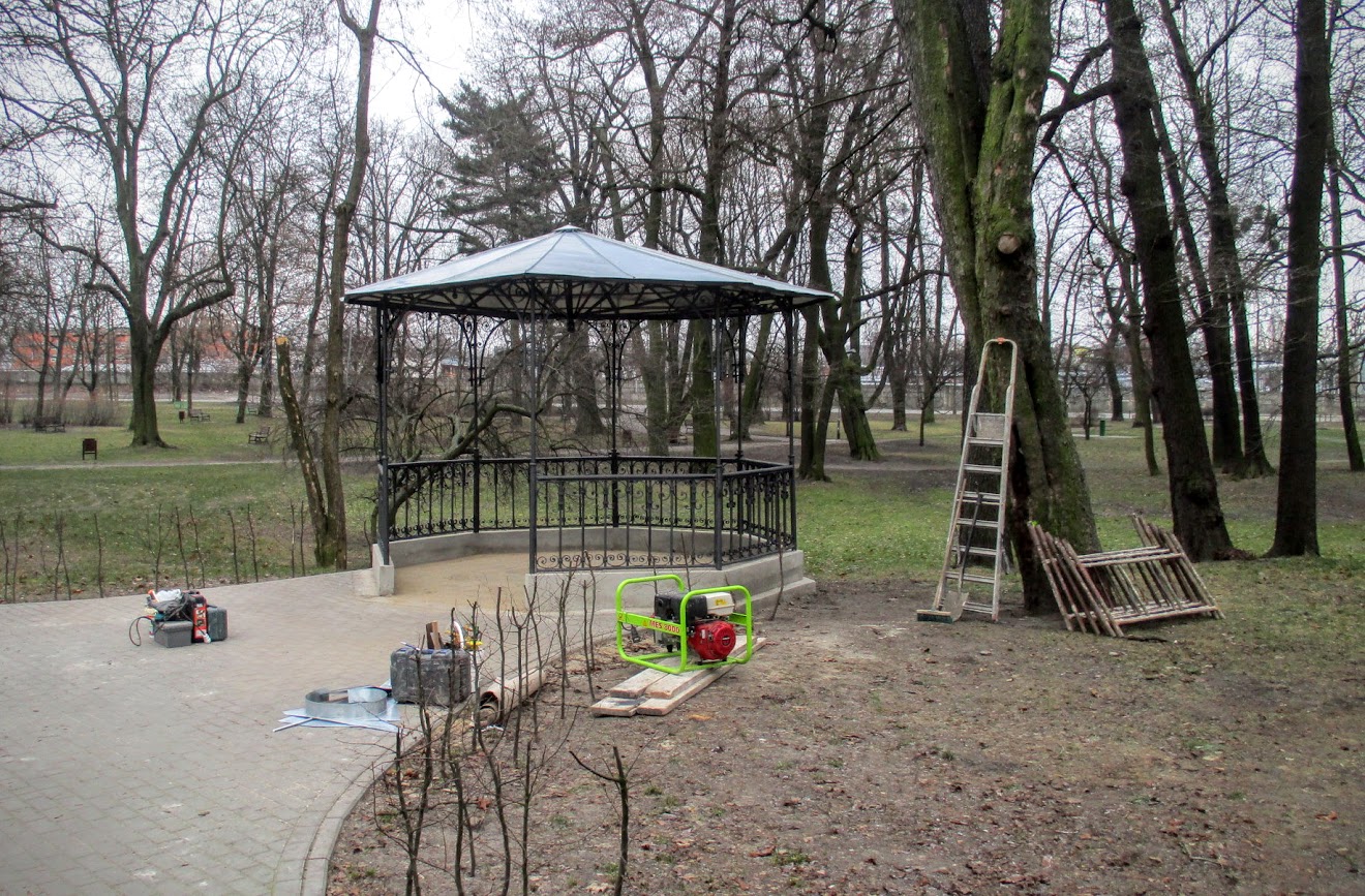 Akurat dziś trafiłem na moment rewitalizacji metalowej altany.