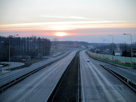 | Po krótkim odpoczynku dojeżdżamy do wsi Studzianki. Z wiaduktu nad trasą S-8, zerkamy na zachodzące słońce. |