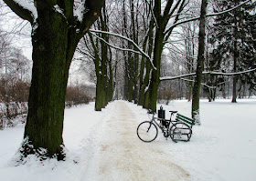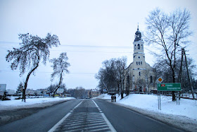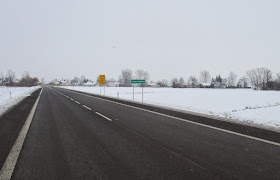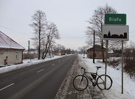 | Ale boczne drogi są mocno zaśnieżone, tak więc decyduję się na kontynuowanie jazdy po DW 702. Szybko dojeżdżam do wsi Biała, gdzie oczywiście jest biało (-: |