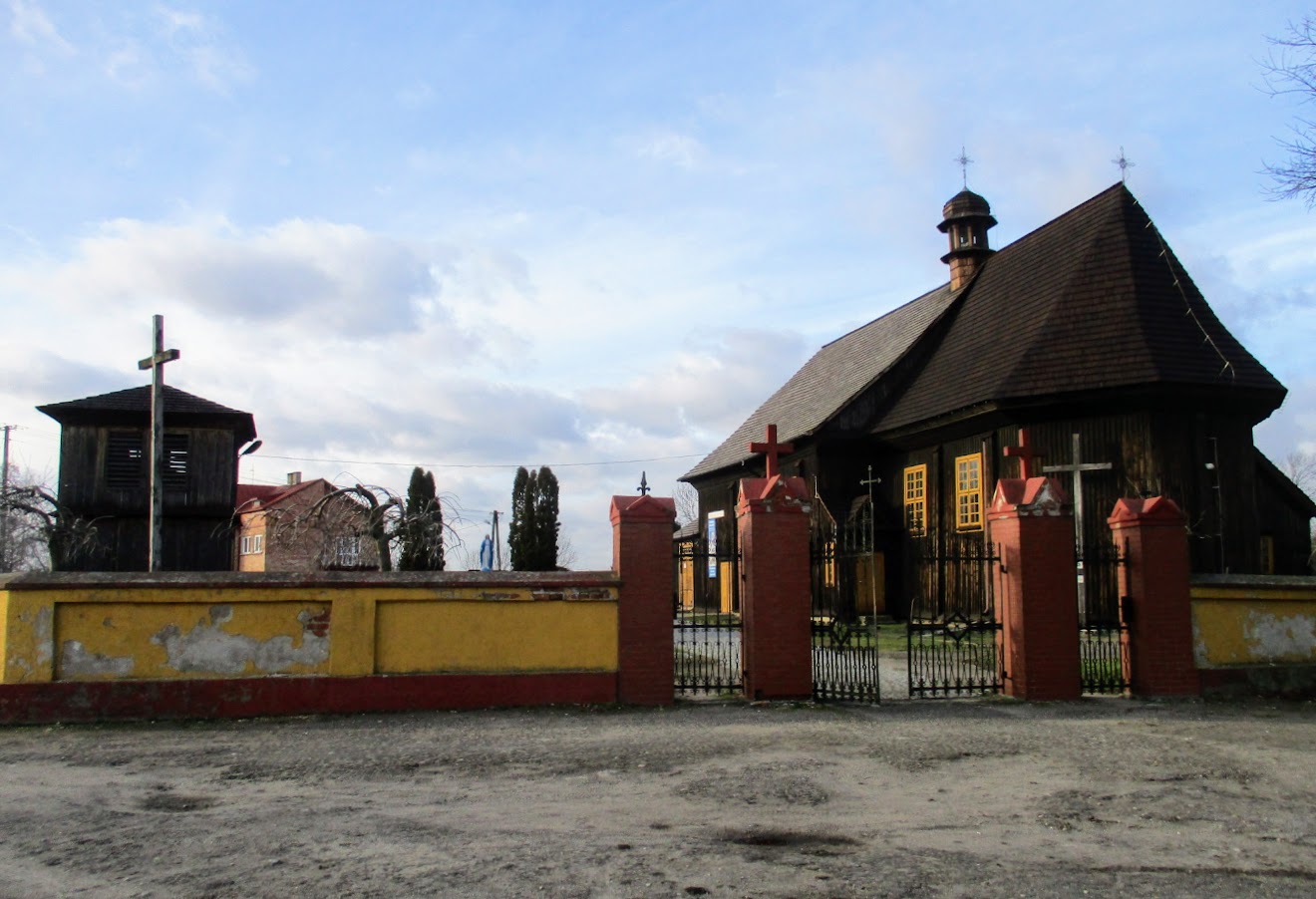 Szybko docieram do wsi Mazew, którą poznałem w trakcie WYCIECZKI Nr 270. Na zdjęciu zabytkowy kościół p.w. św. Jana Chrzciciela.