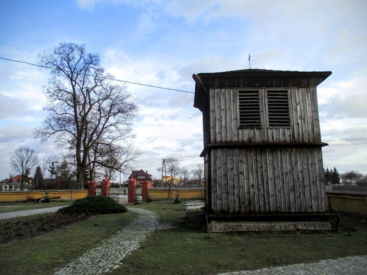 Przy kościele stoi drewniana dzwonnica konstrukcji słupowej z 1775 roku, oszalowana, posadowiona na kamiennej podmurówce.