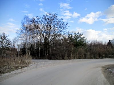 Zmierzch szybko zapada i większość zdjęć, które zrobiłem na tej części szlaku, nadaje się tylko do kosza... Omijając spore kałuże, dojeżdżam do skrzyżowania z ul. Brylantową. Skręcam w prawo w ul. Łupkową.