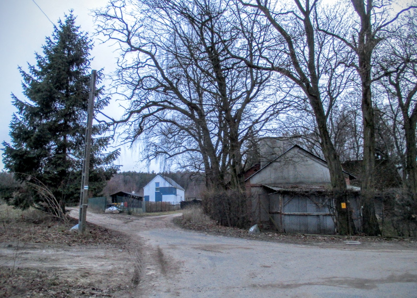 Po dojechaniu do żelaznego krzyża, skręcam w prawo do nowszej części wsi.
