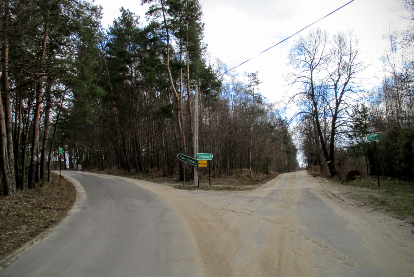 Po przejechaniu kilkudziesięciu metrów na południe, skręcam w lewo w drogę na Nowe Skoszewy i Głogowiec.