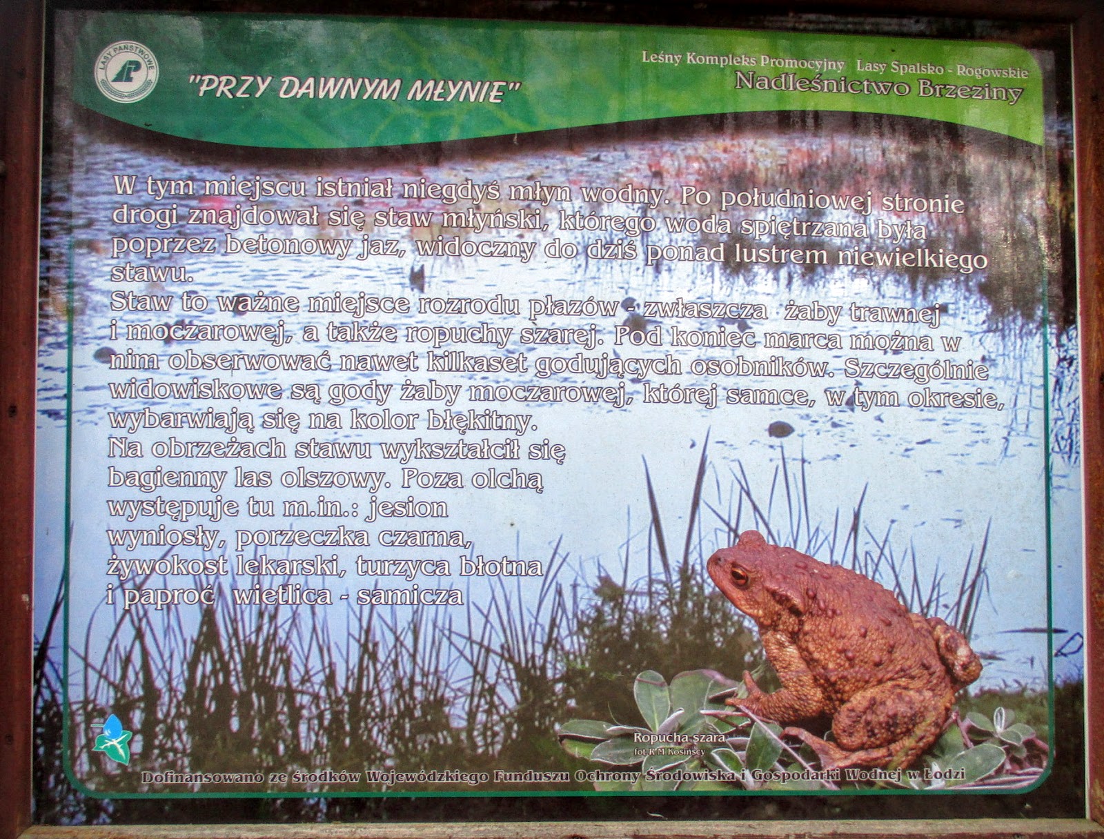 Okazuje się, że w tym miejscu był kiedyś drewniany młyn wodny. Staw ten jest ważnym miejscem rozrodu płazów - zwłaszcza żaby trawnej i moczarowej a także ropuchy szarej. Trzeba tu będzie wrócić pod koniec marca, kiedy to można obserwować gody nawet kilkuset osobników !
