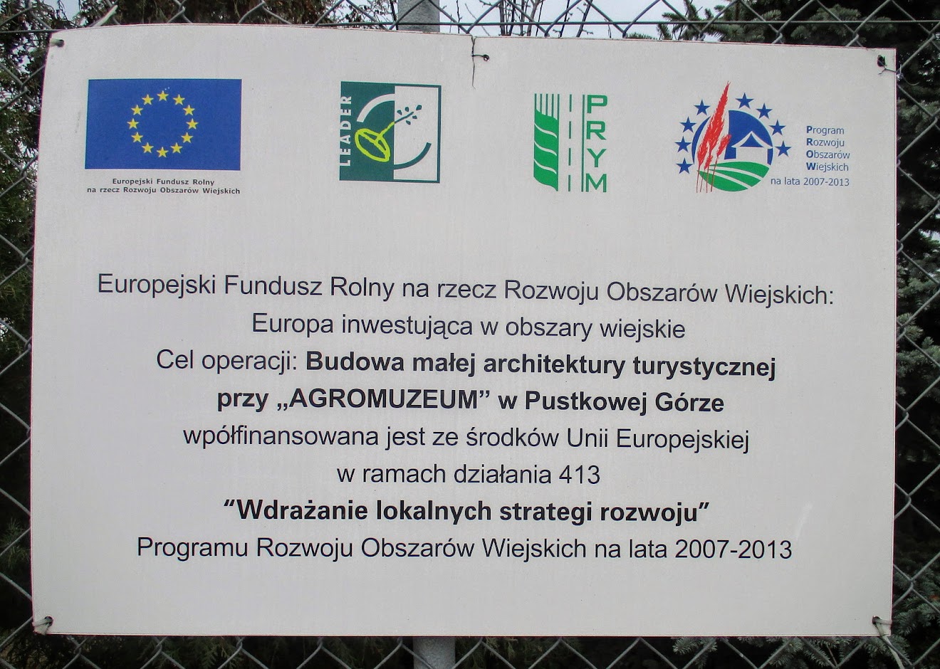 Okazuje się, że operacja "Budowa małej architektury turystycznej przy "Agromuzeum" w Pustkowej Górze" została współfinansowana z funduszy Unii Europejskiej.