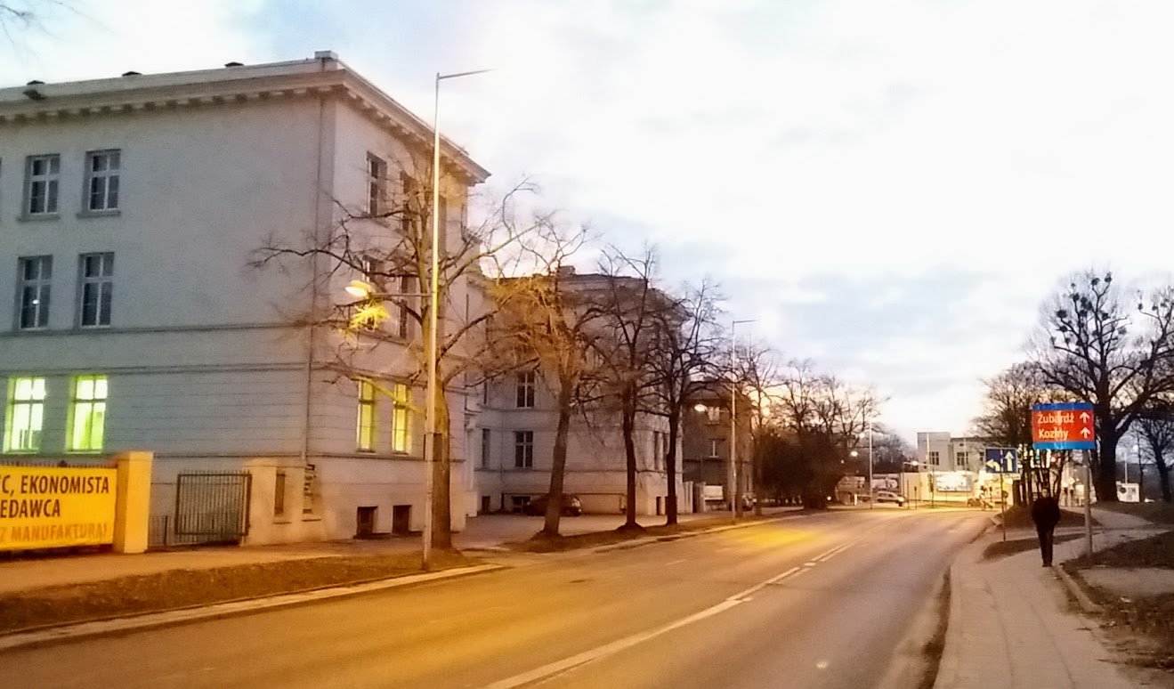 Z Radogoszcza kieruję się w okolicę Manufaktury, pod okazały gmach Zespołu Szkół Ponadgimnazjalnych nr 5 w Łodzi przy ul. Drewnowskiej 88.