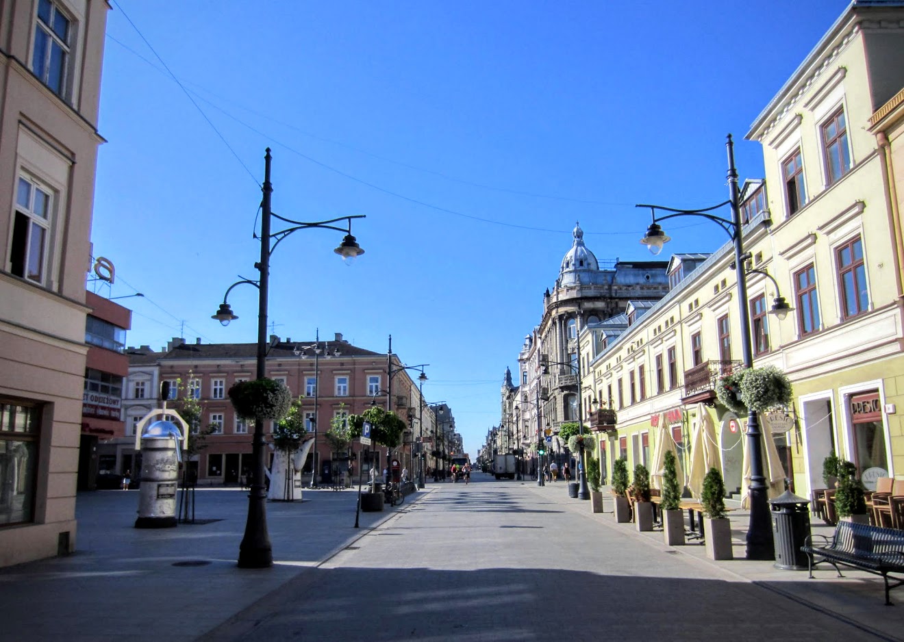 | Wyjeżdżam na ul. Piotrkowską i jadę na plac przy DH „Magda”. Zostały tu ustawione dwie kolejne instalacje : "węgierska" kawiarka i dzbanek. |