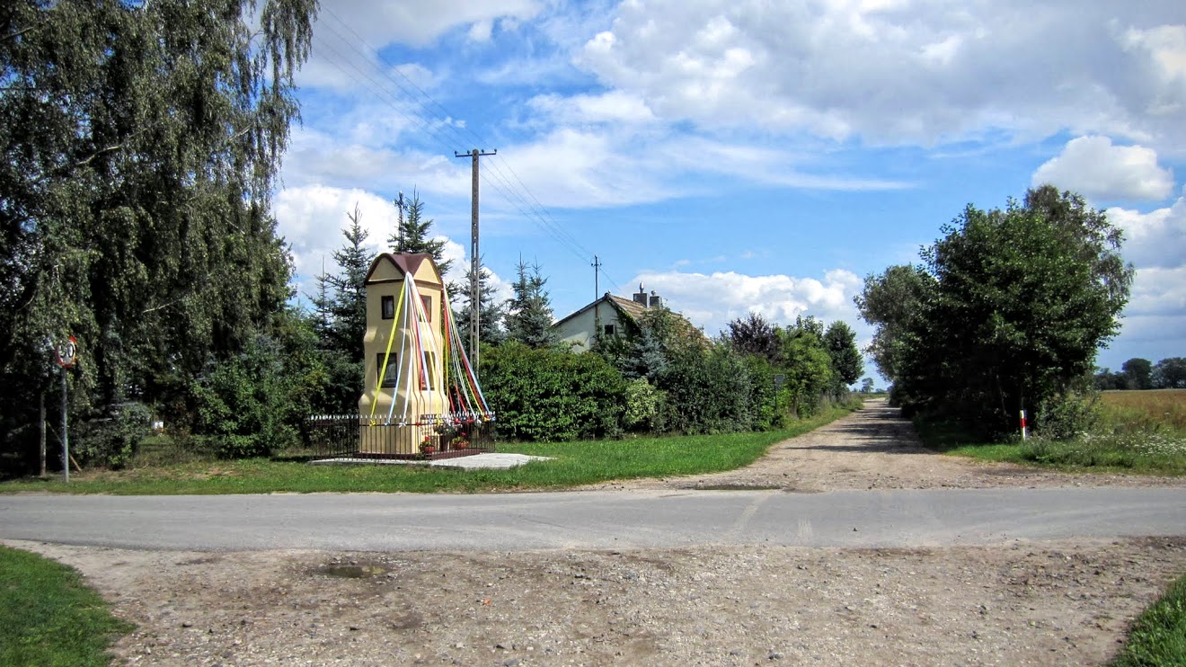 | Kapliczka przy szosie do wsi Raciborów. |