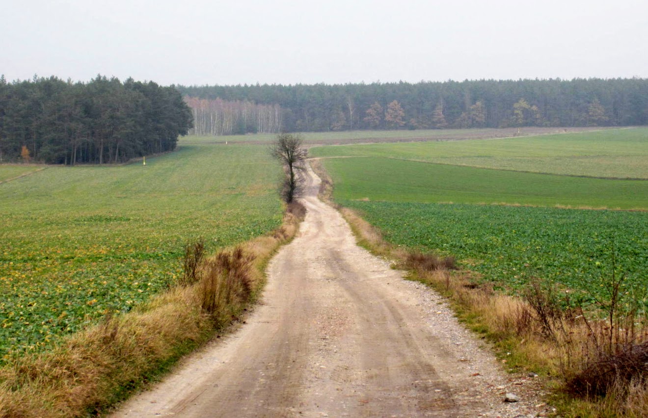 | W Tomaszowie zmieniam kierunek jazdy na płn.-wschód. Wyjeżdżam na drogę techniczną, która ciągnie się wzdłuż trasy szybkiego ruchu S-8. |
