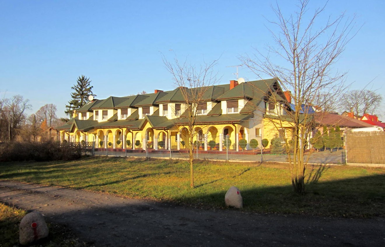 Pędzę dalej do wsi Jadwigów. Po zachodniej stronie trasy S-8 znajduje się bardzo duży, współczesny dom. Przypomina trochę dworską posiadłość.