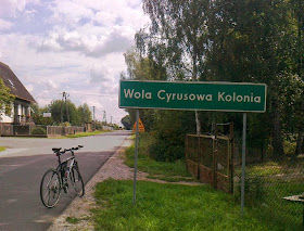 | Pokonuję mały podjazd i przede mną płaski odcinek trasy. Jadę kilkanaście minut przez sam środek poćwiardowskiego lasu. W Kolonii Wola Cyrusowa wkraczam na tereny gminy Dmosin. |
