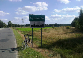| Z Białej pedałuję na Szczawin, jadąc przez Cyprianów i las przy wsi Jeżewo. |