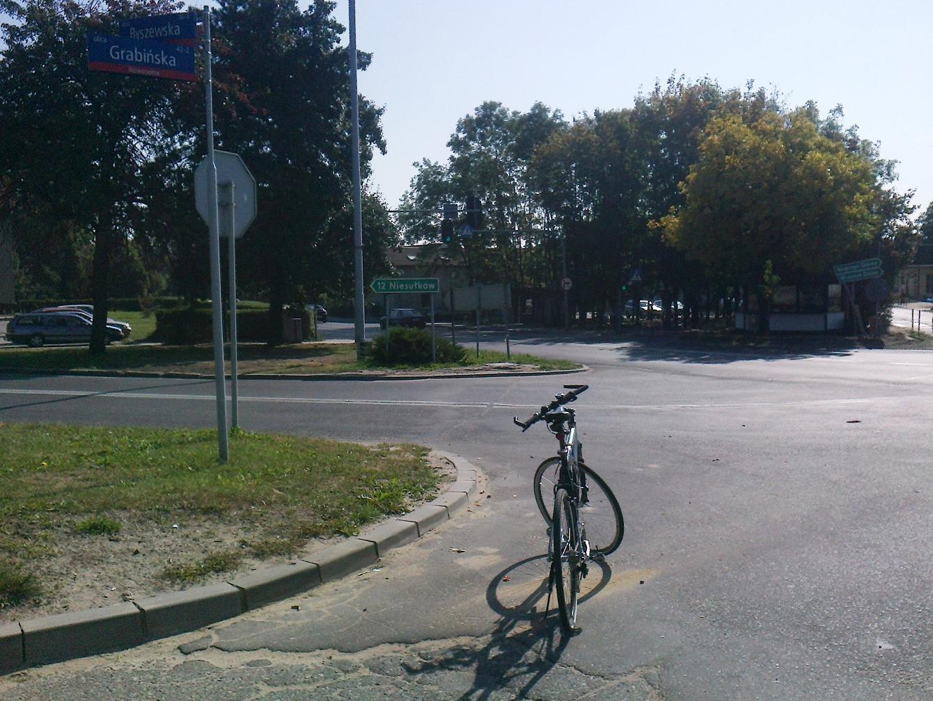 | Jestem na trasie we wsi Gałkówek Parcela, gdzie porządna asfaltówka prowadzi na zachód. |