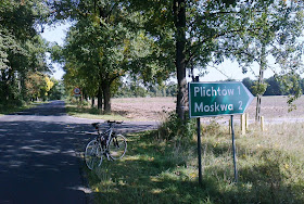 | W tym miejscu skręcam w prawo w drogę na Plichtów i do wsi Moskwa. Trzeba się tu będzie trochę pomęczyć, bo teren wypiętrza się na wysokość około 200 metrów n.p.m. ! |