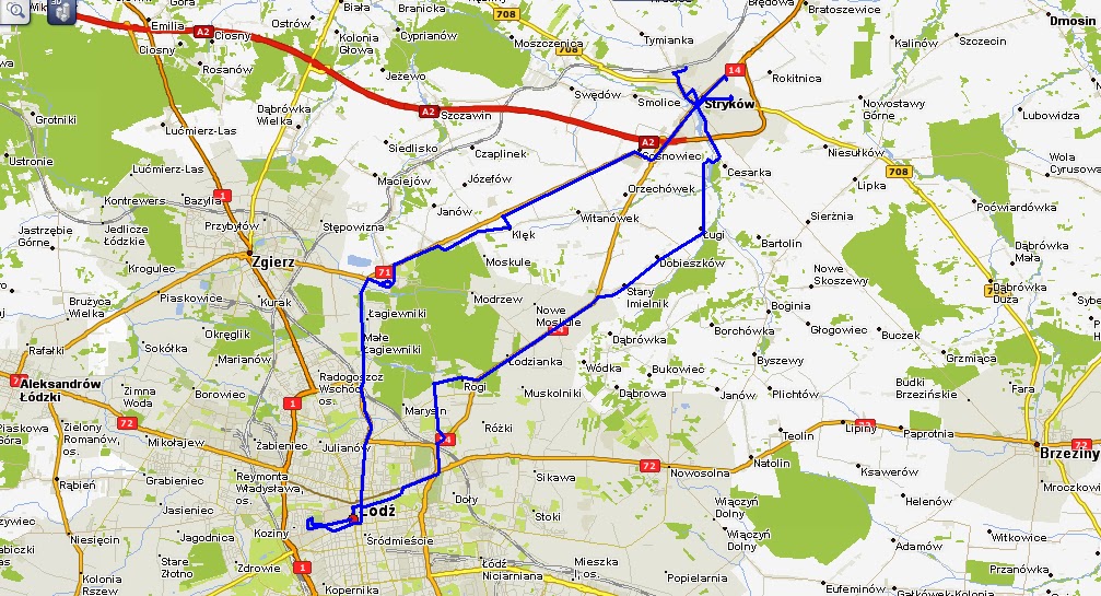 | Zajazd położony jest przy drodze krajowej nr 14 z Łodzi do Warszawy. Skręcam w lewo i jadę ul.Strykowską do północnej granicy miasta. |