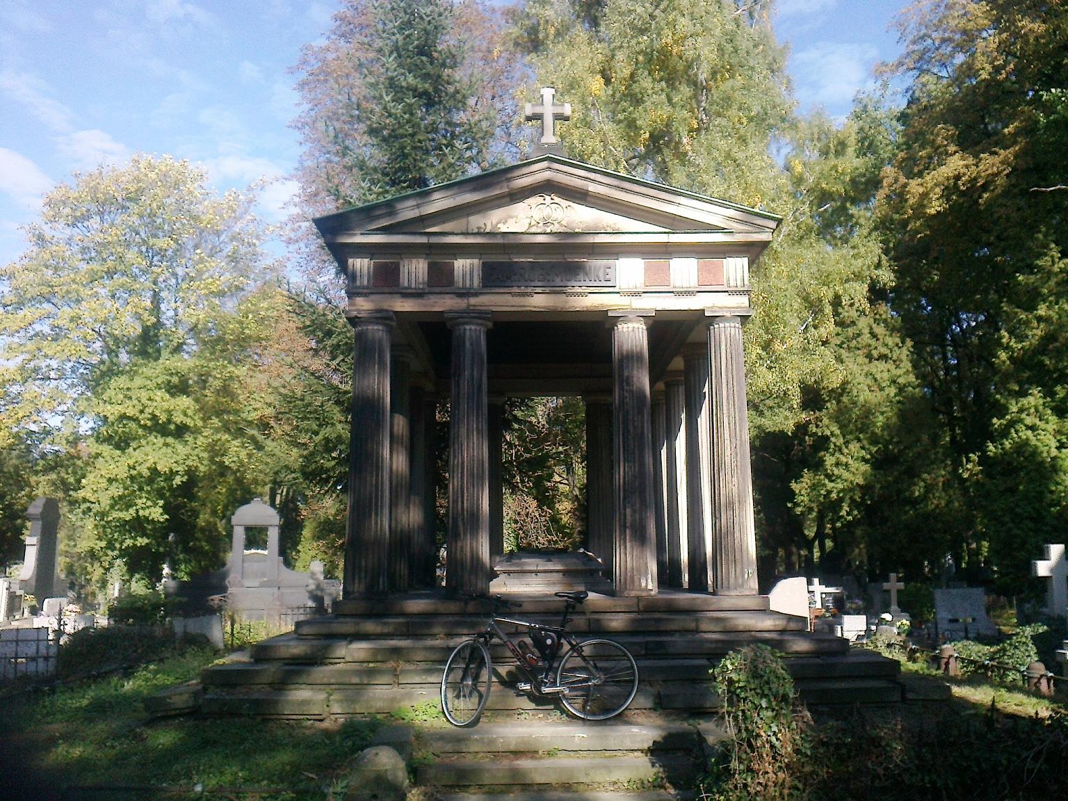 | Mr SCOTT i Kaplica Rodziny Scheiblerów od północnej strony cmentarza. |