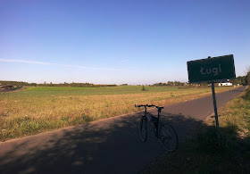 | Jadę cały czas prosto do wsi Ługi, gdzie można zachwycać się urządzonymi z przepychem nowoczesnymi domami. Droga zachęca do utrzymywania tempa na poziomie około 30 km/h ! |