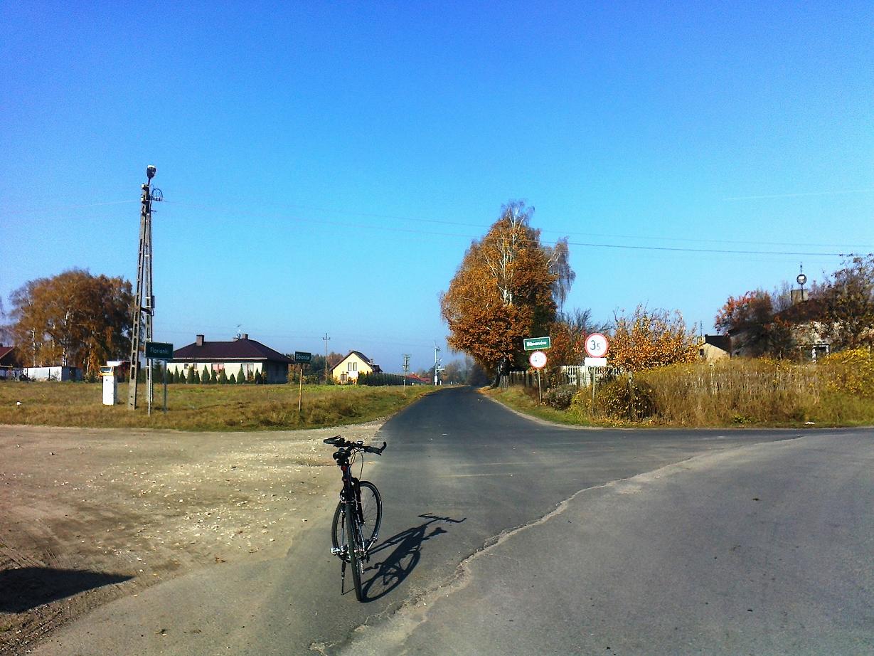 Jadę od cmentarza w stronę płd.-zachodu. Mijam ten charakterystyczny rozjazd do wsi Pełczyska.