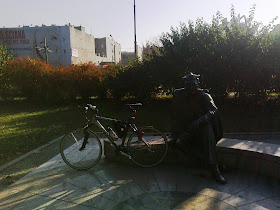 | Robię rundkę po parkowych alejkach i kieruję się w stronę ul. Ogrodowej. Stoi tu pomnik Aleksandra Kamińskiego, który został odsłonięty 24 września 2005 roku. |