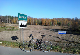 | Do następnego skrzyżowania prowadzi piaszczysta i nierówna droga. Jadę prosto - w lewo kierunek na Siedlisko. |