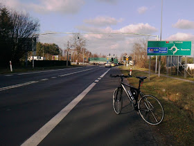 | Wracam na szlak i pędząc z górki docieram do ronda na drodze krajowej nr 1. W prawo można dojechać do Rosanowa, w lewo jest zjazd na autostradę A-2. Jadę dalej prosto. |