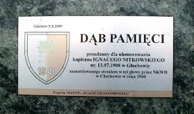 Na drugiej czytam "Głuchów 9.X.2009. DĄB PAMIĘCI posadzony dla uhonorowania kapitana IGNACEGO NITKOWSKIEGO ur. 13.07.1908 r. w Głuchowie, zamordowanego strzałem w tył głowy przez NKWD w Charkowie w roku 1940". Cześć Jego Pamięci !