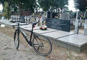 Skręcam w centralną alejkę, która prowadzi na zachód cmentarza. Po jej lewej stronie ustawiony jest grobowiec Rodziny Gromek. Jest to pomnik z czarnego, błyszczącego marmuru, z medalionem Chrystusa na krzyżu i porcelanową fotografią zmarłego.