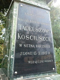 Dojeżdżam do ronda, gdzie po prawej stronie stoi pomnik Tadeusza Kościuszki. Wzniesiono go w 1917 roku z kawałków wypolerowanego granitu. Na kilkustopniowym podwyższeniu, ustawiono cokół z popiersiem bohatera narodowego Polski i Stanów Zjednoczonych.