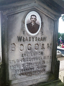 Na cokole umieszczono zdjęcie przystojnego mężczyzny z sumiastym wąsem, odzianego w ciemny płaszcz i białą koszulę. Spoczywa tu "Ś.P. Władysława Bogdan żył lat 38, zm.16 czerwca 1918 r. Prosi o Zdrowaś Marja. Kochanemu Mężowi tę pamiątkę poświęca Żona".