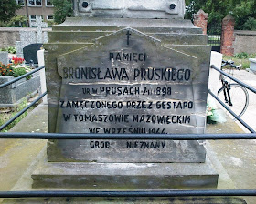 Ostatni właściciel majątku w Prusach - Bronisław Pruski, aktywnie działał w podziemiu niepodległościowym podczas okupacji. Schwytany przez Niemców wraz z okolicznymi działaczami tajnych organizacji, poniósł śmierć w masowej egzekucji w Tomaszowie Mazowieckim w dniu 28 sierpnia 1944 roku. Na cokole umieszczona jest tablica pamiątkowa z napisem "Pamięci Bronisława Pruskiego, ur. w Prusach 7.II.1898. Zamęczony przez gestapo w Tomaszowie Mazowieckim we wrześniu 1944 r. Grób nieznany".
