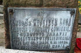 Na kamiennym nagrobku znajduje się płyta z cyny, na której umieszczono wypukłą inskrypcję "Ś.P. Ksiądz WOJCIECH LOGA Kanonik kolegiaty Łowickiej, Proboszcz Parafii Głuchowsko-Wysokiennickiej. Żył lat 46. Zmarł 8.XI.1862 r. Prosi o Zdrowaś Marja".