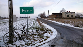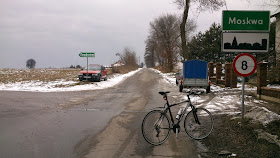 | Skoro był zjazd, to zaraz za nim musi być podjazd. Sprawnym ruchem zmieniam przełożenia przerzutek i wolnym, miarowym tempem podjeżdżam do wsi Moskwa. Mr SCOTT już raz zdobył Moskwę - zobacz WYCIECZKA Nr 47. Nastrój zdecydowanie się poprawia, bo moja syberyjska tułaczka powoli dobiega końca ! Wszystko wydaje się być takie realistyczne... Jest bardzo zimno, dookoła pola pokryte śniegiem, jadę do domu z dalekiej Syberii i to właśnie przez Moskwę ! |