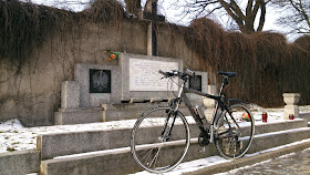 | Krzyż przystrojony jest barwnymi wstążkami, w wazonie tkwią sztuczne kwiaty a na podeście pali się znicz. Skręcamy w prawo i jedziemy na zachód przez zaśnieżoną i mroźną Syberię. |