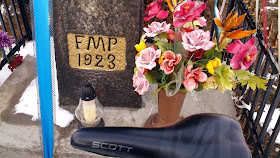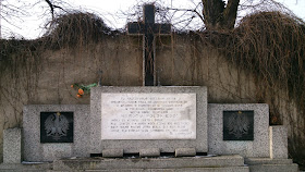 | Naprzeciwko przy ścianie kaplicy cmentarnej, znajduje się druga mogiła. Obydwie oglądałem już na zakończenie WYCIECZKI Nr 97. |