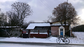 | Dojeżdżam do remizy Ochotniczej Straży Pożarnej w Syberii, która znajduje się po lewej stronie szosy. Po obu stronach drogi stoją zagrody gospodarcze i domy jednorodzinne. |