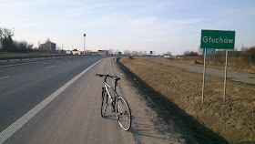 | Kilkadziesiąt metrów przed nimi, dywan asfaltu powiększa się o szerokie pobocze, po którym można się bezpiecznie poruszać do samej Łodzi. Po chwili wjeżdżam do Głuchowa. |
