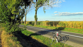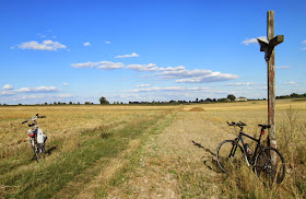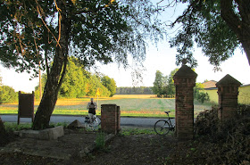 | Na zakręcie szosy zbaczamy ze szlaku i jedziemy kilkanaście metrów na wschód polną drogą. |